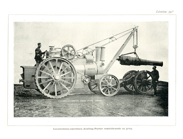 Multimedia en el que se aprecian los primeros pasos en la motorización de la artillería. En primer lugar dos vistas de la locomotora caminera Aveling Porter, en dos de las configuraciones que se emplearon: locomóvil y grúa. A continuación podemos ver las fotografías correspondientes a las pruebas hechas en el Polígono de Experiencias de Carabanchel para la organización de trenes de artillería de sitio con tractor automóvil, publicadas en el Resumen de los trabajos del 4º negociado de la sección de artillería del ministerio de la guerra durante el año 1913, libro editado en el año 1914. Las fotos corresponden a las pruebas efectuadas con un tren de obuses de 15 cm y tractor Daimler y otro de cañones de 12 cm y tractor Skoda; una tercera foto muestra al completo los trenes junto al tractor del carro parque y un camión para transporte de munición. Y, finalmente, una serie de fotografías pertenecientes al tractor Citröen, probado en el año 1930. La primera de ellas, corresponde a un anuncio comercial del representante de Citröen en España, publicado en el Memorial de Artillería de 1930, en la que se aprecia un tractor remolcando un cañón de 7,5 cm de campaña que se ha montado sobre un carrillo provisto de suspensión elástica, ya que los montajes de campaña no estaban preparados para el transporte por carretera a las velocidades alcanzadas por los vehículos con motor de explosión. El resto de las fotografías muestran varios momentos de las pruebas efectuadas por la Comisión de Experiencias en el Polígono de Carabanchel. Se puede apreciar en ellas, que el personal que conduce el tractor no es militar; debe tratarse de empleados de la casa Citröen. |
