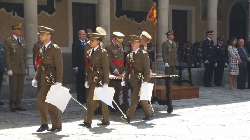 Así que mantengan la vista en el futuro, porque el futuro les pertenece; pero vuelvan, vuelvan de vez en cuando, vuelvan a esta Academia, vuelvan a su promoción, vuelvan a Segovia, que hoy les ha hecho hijos adoptivos. Nos alegraremos de verles convertidos en los oficiales y suboficiales que España necesita.